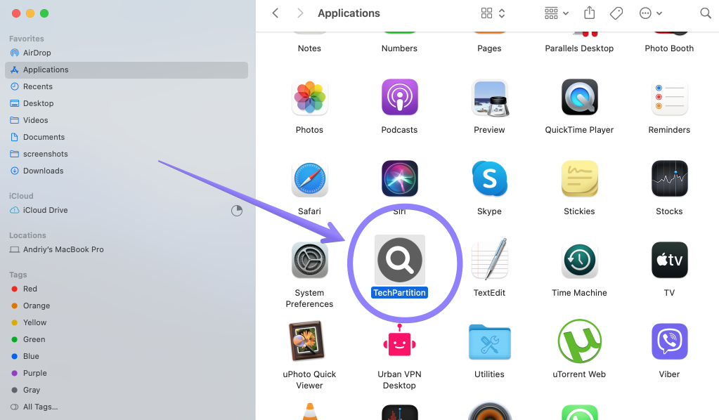 - Find the appropriate app file related to TechPartition and move it to the Trash;