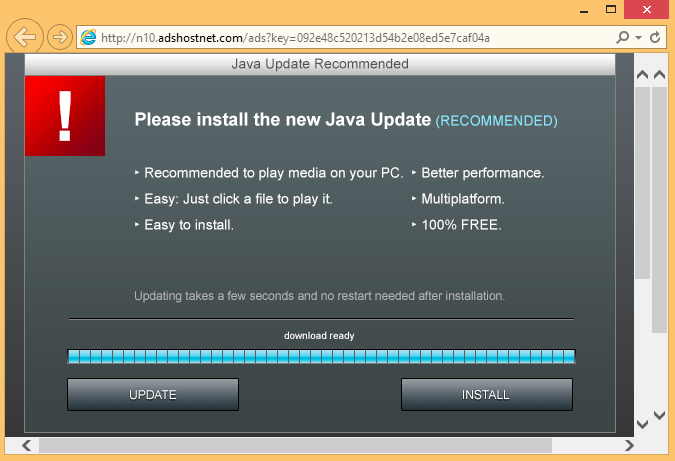 The problem of n10.adshostnet.com pop-ups is the issue for the majority of browsers today, including Google Chrome, Mozilla Firefox and Internet Explorer. As we’ve said, the contents of such pop-ups are often very misleading. For example, you may be reported about various viruses and problems supposedly identified in your PC. Then this pop-up may tell you about the need to download and install some additional programs into your PC, which will supposedly fix these issues with your computer. This is where the danger is concealed. You may, in fact, install a lot of absolutely useless applications into your PC, which will make your system to work extremely slow. This will be especially true when it comes to the speed of your browser.