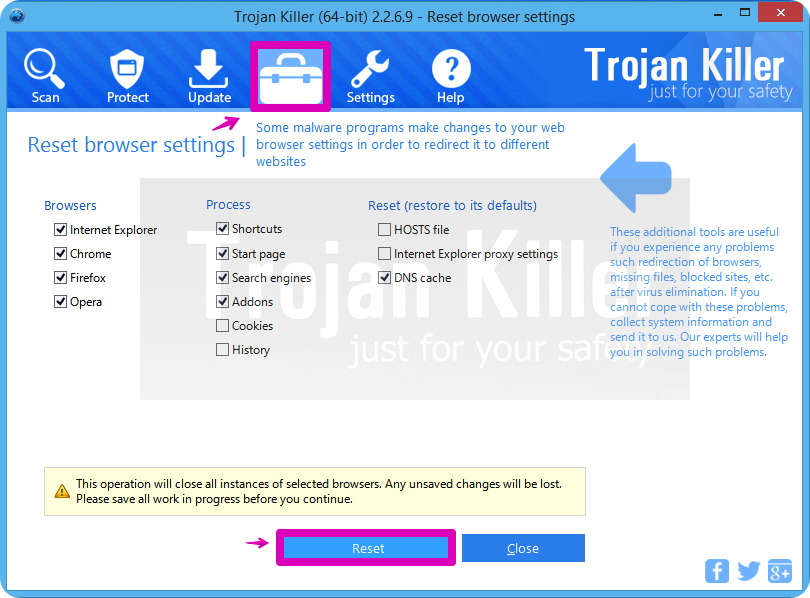 - Important! It is also necessary that you reset your browsers with Plumbytes Anti-Malware after this particular adware removal. Shut down all your available browsers now.