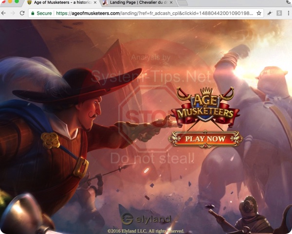 Ageofmuskeeters.com pop-ups have the intention to force you to start playing online games, which have extremely sinful and filth content. Obviously, such pop-ups are not child-safe. They may ruin the heart of the person that is engaged in watching them. We strongly advise that you do not interact with these faulty alerts, no matter how attractive they are.