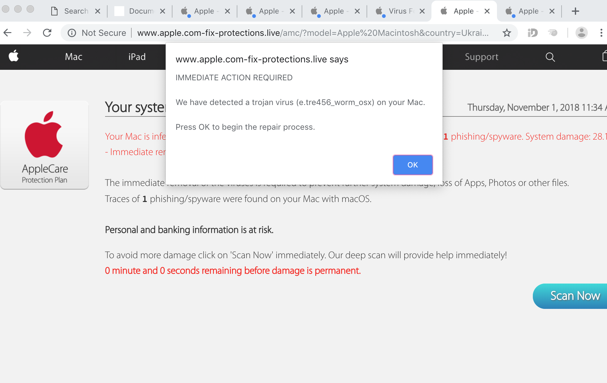 Apple.com-fix-protections.live pop-ups are solely the problem for Mac computers and their browsers – Google Chrome, Mozilla Firefox and Safari. Apple.com-fix-protections.live pop-ups are scary because they tend to quote e.tre456_worm_osx trojan virus, which is surely a fake alert in order to scare users into downloading and installing potentially unwanted software. You may continue reading this guide and you will find out what needs to be done in order to neutralize such pop-ups in your system.