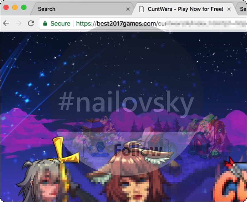 Best2017games.com pop-ups have the intention to force you to start playing online games, which have extremely sinful and filth content. Obviously, such pop-ups are not child-safe. They may ruin the heart of the person that is engaged in watching them. We strongly advise that you do not interact with these faulty alerts, no matter how attractive they are.