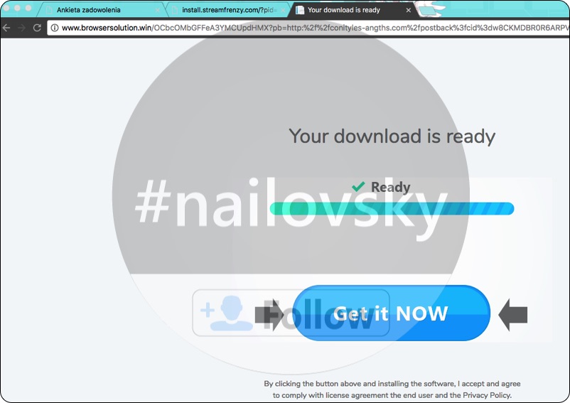 You ought to be aware of the truth that this misleading alert from browsersolution.win is not only fake but malicious. If you use the latest version of Windows of Mac OS Sierra software, you do not need any additional updates to be installed. Yet, if you trust this pop-up, you may end up to see your system absolutely out of order due to so many additional useless programs installed through these faulty alerts. So, be very careful!