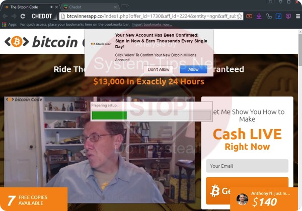 Instructions for removal of btcwinnerapp.co pop-ups.