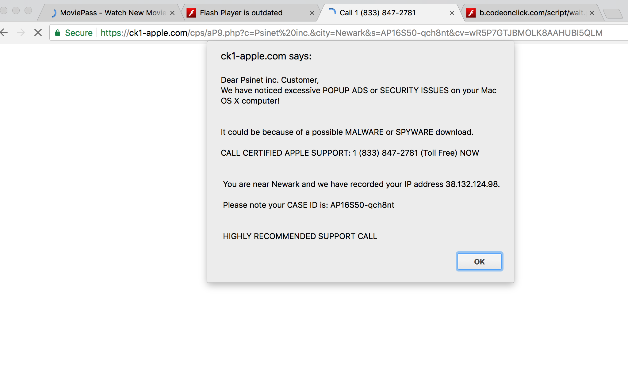We have noticed excessive pop-up ads or security issues on your Mac OS X computer!