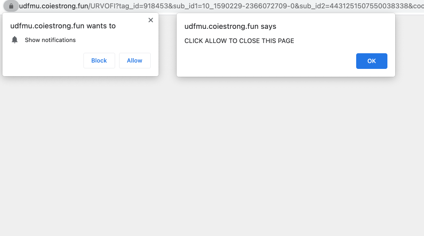 coiestrong.fun pop-ups have the intention to redirect your browser to plenty of other unsafe places in the world wide web. As a result, your home page may be hijacked, whereas the entire system may become infected with other potentially unwanted and even harmful programs. As a result, you may end up facing your computer to be permanently freezing and unable to satisfy your requirements.