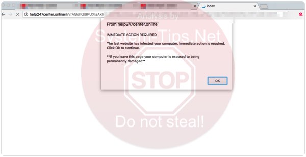 Help247center.online is a very scary alert that may suddenly start attacking your Windows and Mac browsers, such as Google Chrome, Safari and Mozilla Firefox. The intention of such pop-ups is to make you think that your system is infected with the most dangerous malware in order to persuade you to download some suspicious application. However, the problem is that being such pop-ups there are certain cyber crooks who hunt for your money. We strongly advise that you continue reading this guide that explains how exactly to fix your system in an automatic way.