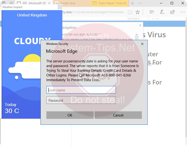 The server pcusersecurity.date is asking for your user name and password. The server reports that it is from Someone is trying to steal your banking details, credit card details & other logins. Please call Microsoft at 0-800-041-8266 immediately to prevent data loss.