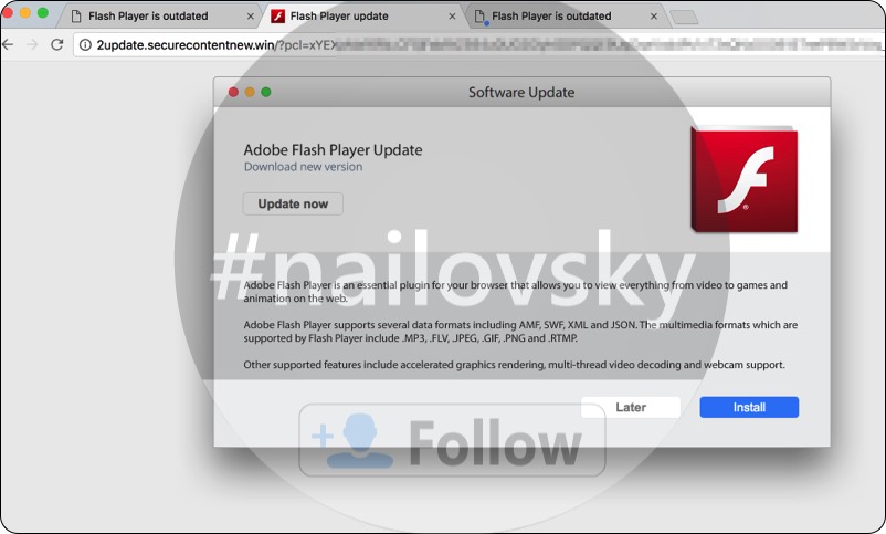 You ought to be aware of the truth that this misleading alert from securecontentnew.win is not only fake but malicious. If you use the latest version of Windows of Mac OS Sierra software, you do not need any additional updates to be installed. Yet, if you trust this pop-up, you may end up to see your system absolutely out of order due to so many additional useless programs installed through these faulty alerts. So, be very careful!