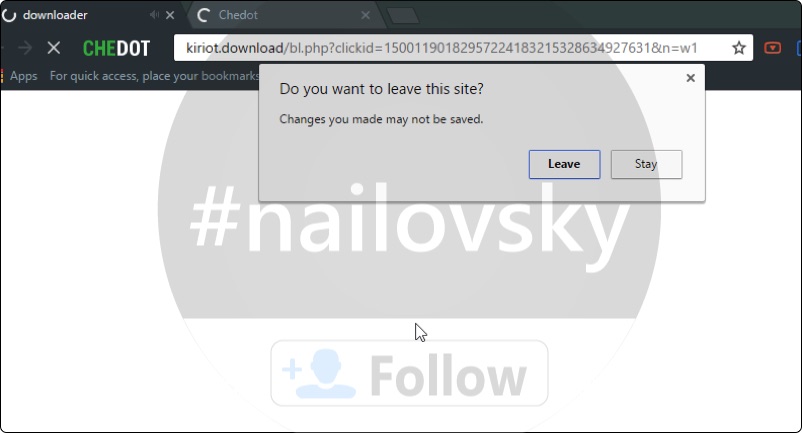 First of all, it is important to mention that kiriot.download pop-us are primarily the problem for Google Chrome browser. They may also attack other browsers that are based on the Chromium open source project. You will definitely notice that your browser and your system in general will be functioning extremely slow as a result of kiriot.download pop-ups enabled.