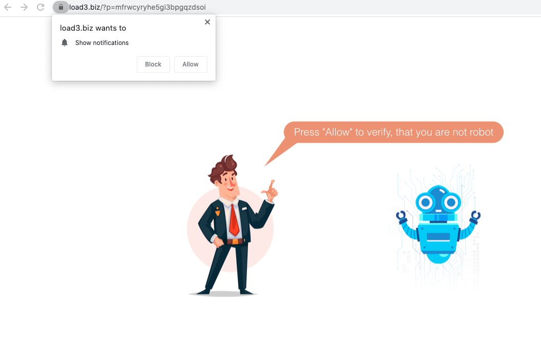 Load3.biz is obviously a very malicious resource that attempts to infect your browser with the feature of excessive push notifications. The danger of the load3.biz pop-ups is because this resource is interconnected with many unfamiliar pages and several advertising agencies that try to promote third-party content. The research indicates that a lot of this content is absolutely dangerous. For instance you may be brought to the pages that promote rogue security software, fake system optimization tools, adware, browser hijackers and so on. If you don’t know how to get rid of the load3.biz pop-ups, follow this guide for more details.