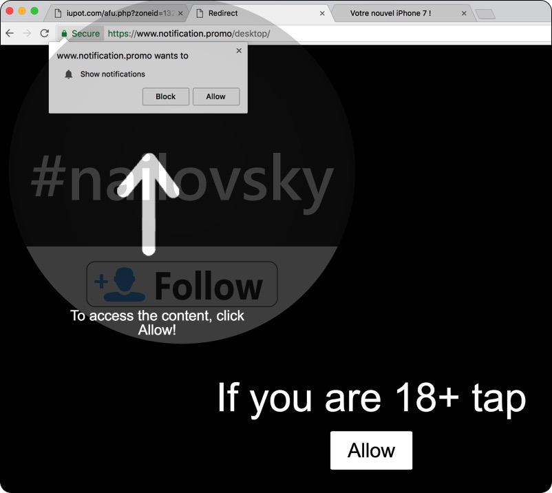 Notification.promo pop-ups have been specifically noticed to appear in Google Chrome browser. Keep in mind that these alerts are not safe, so you’d better not interact with them at all. They will tell you about the chance to access some explicit content, and after you allow such pop-ups to show you various notifications you will be quite fed up to combat the problem of continuous browser redirection. You may be regularly brought to all kinds of dangerous places in the web and thus the system will be messed up with malware. Use this guide that explains how to fix your system in a proper way.
