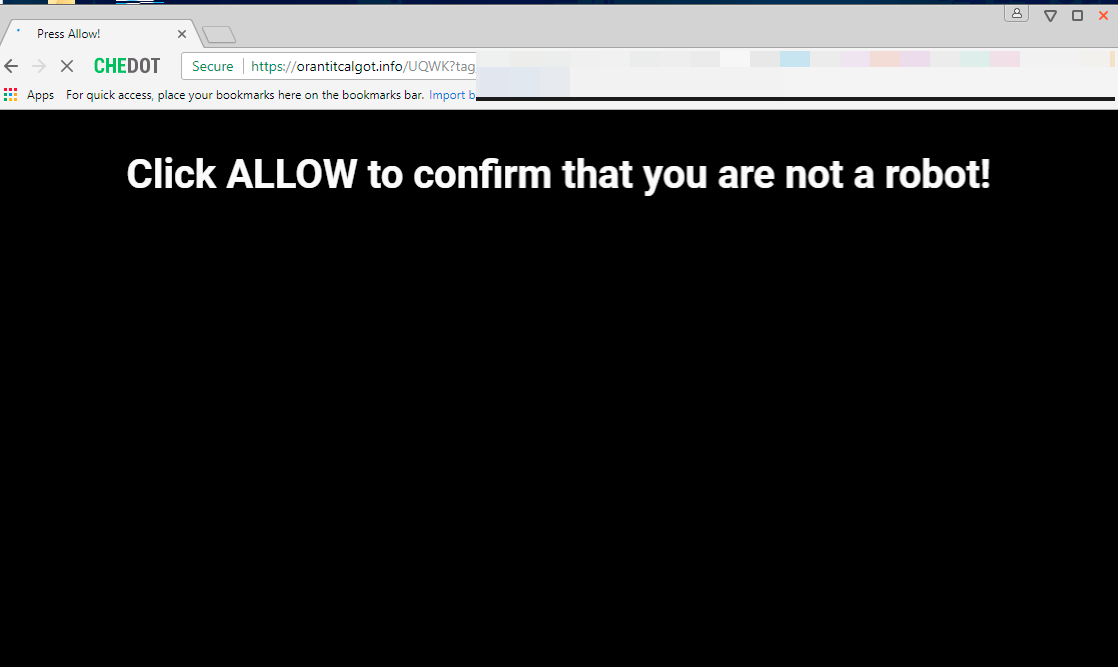 Orantitcalgot.info pop-ups now keep attacking the multitude of computers all over the world. Their main intention is to force you to enable very intrusive web push notifications through all popular browsers, including Google Chrome, Mozilla Firefox, Opera, etc. The pop-ups are used to redirect your browser to the multitude of very annoying websites that may infect your computer even more essentially. Please be very careful not to tolerate these pop-ups but instead follow this guide step-by-step. It will provide you with information on how to fix your browser in a proper manner.