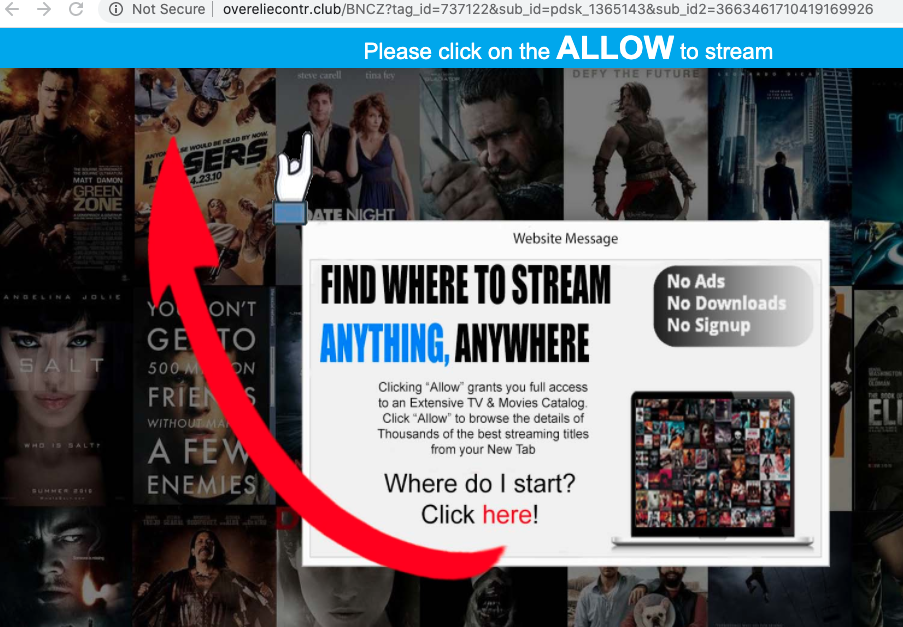Overeliecontr.club pop-ups have the intention to redirect your browser to plenty of other unsafe places in the world wide web. As a result, your home page may be hijacked, whereas the entire system may become infected with other potentially unwanted and even harmful programs. As a result, you may end up facing your computer to be permanently freezing and unable to satisfy your requirements.