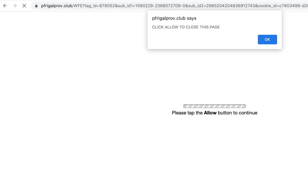 Pfrigalprov.club pop-ups have the intention to redirect your browser to plenty of other unsafe places in the world wide web. As a result, your home page may be hijacked, whereas the entire system may become infected with other potentially unwanted and even harmful programs. As a result, you may end up facing your computer to be permanently freezing and unable to satisfy your requirements.