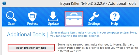 - In Plumbytes Anti-Malware click “Tools” tab and select “Reset browser settings“: