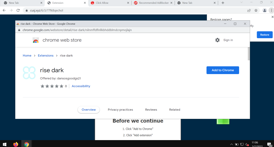 Rise Dark is a special extension for the Google Chrome browser. The extension is initially advertised by its authors as some important browser update. However, in reality, installing such fake updates is extremely dangerous. Because of that, a lot of crucial browser settings may be changed without the customer’s permission.