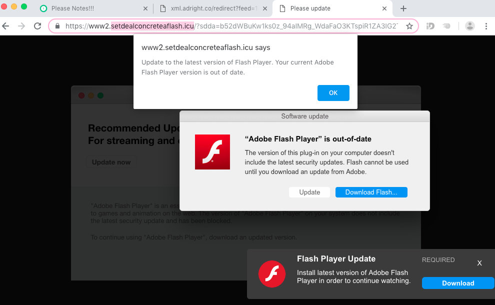 Setdealconcreteaflash.icu pop-ups have the intention to infect your system with the wide range of potentially unwanted utilities, such as adware samples, browser hijackers an fake system optimizations tools. You must not download anything that setdealconcreteaflash.icu pop-ups suggest!