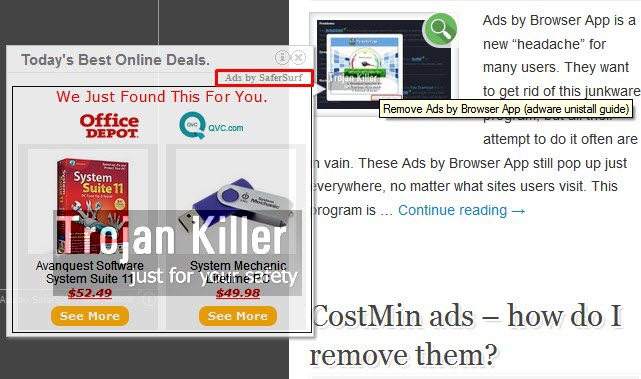 It is true that Ads by SaferSurf are very multiple. No matter which website you visit – you will see such ads popping up just everywhere. The truth is that clicking such pop-up windows and ads may result in your browser being redirected to other random websites, which may infect your PC with tons of other malicious or potentially unwanted programs. So, we recommend you to stay away from clicking such ads, no matter how attractive or intrusive they could be.