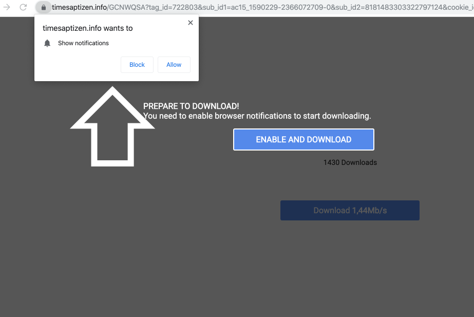 Timesaptizen.info is an extremely dangerous website that may suddenly appear in your browser and cause many problems. For example, you could experience continuous push notifications that may randomly redirect you to many malicious resources on the web. Problems with timesaptizen.info pop-ups occur with Google Chrome, Mozilla Firefox and other popular browsers. You ought to be careful when encountering these alerts. The first important tip is that you do not click on the “Allow” button as the pop-up recommends. Follow this tutorial for more detailed information to get your device fixed.