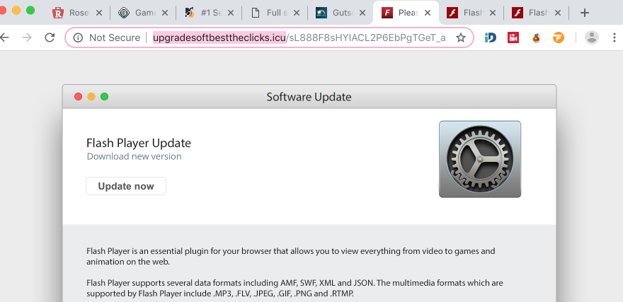 Upgradesoftbesttheclicks.icu pop-up windows keep suggesting you to perform some updates of Adobe Flash Player. The reality though is that there is absolutely no need for you to perform such updates at all. Your computer is already provided with all the necessary software for video or audio playback. As we have mentioned above, upgradesoftbesttheclicks.icu pop-ups tell you to update this fake Adobe Flash Player simply because this installer contains executable or dmg-files of other hazardous programs that your computer does not really need. So, you should stay away from interacting with upgradesoftbesttheclicks.icu alerts.