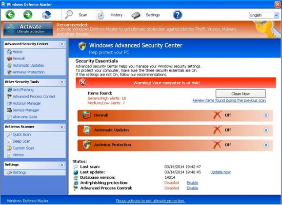Windows Defence Master is not a good program. It’s a scam! Don’t trust it. Don’t treat it as legitimate. Ignore its scary warnings on your PC, all fake reports it displays to frighten you. Do not buy this hoax. This is the total waste of your time and money in particular. Following this tutorial will help you to get rid of Windows Defence Master virus from your system.