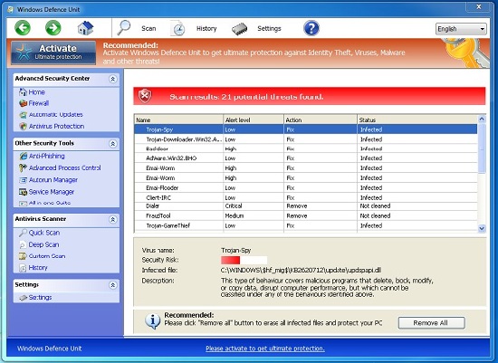 Windows Defence Unit is a serious rogue antispyware program which may easily attack your PC in times when it is seriously vulnerable to virus attacks. This may take place as a result of weak anti-virus protection of your system. Users definitely need to remove Windows Defence Unit from their PCs, but the problem is that they simply don’t know how to do it. This guide will help you get rid of Windows Defence Unit and all its related remnants.
