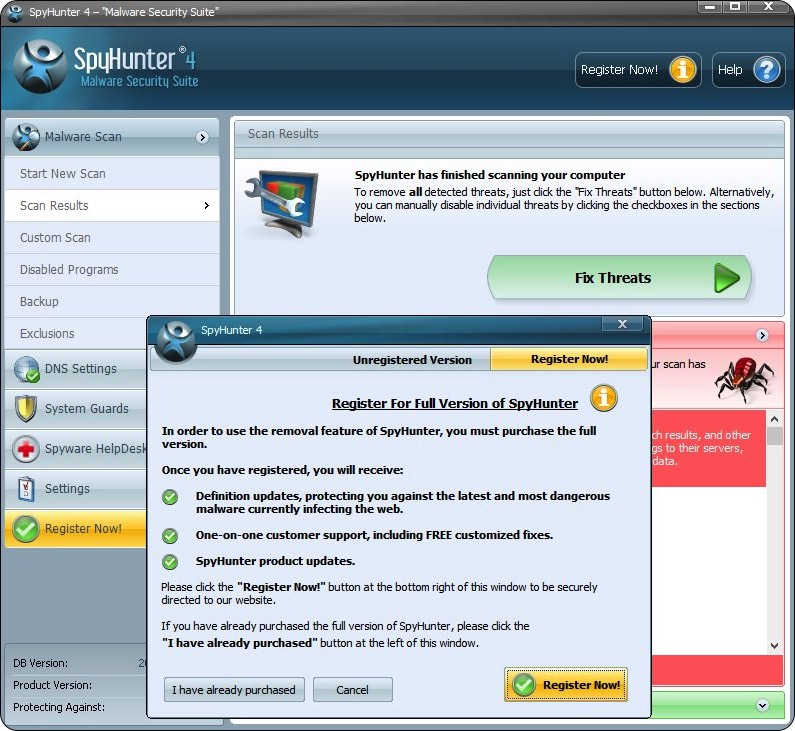 SpyHunter 4 – Malware Security Suite is a superb solution rendering cutting edge computer security and protection services for your computer. With its activated version your system will be permanently protected from various computer infections, Trojan horses, malicious programs, browser hijackers, adware and other potentially unwanted applications. We recommend you to purchase its full registered version now to keep your PC safe.